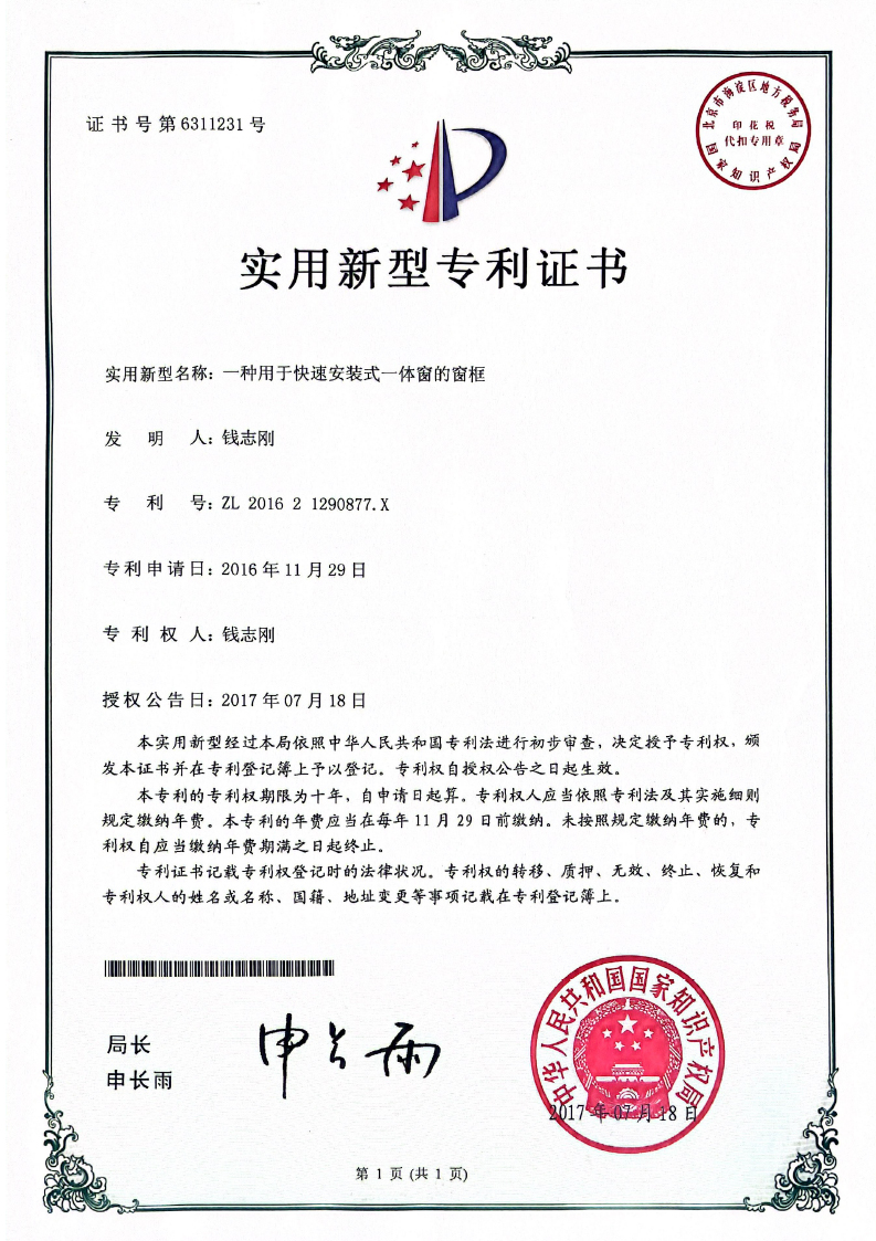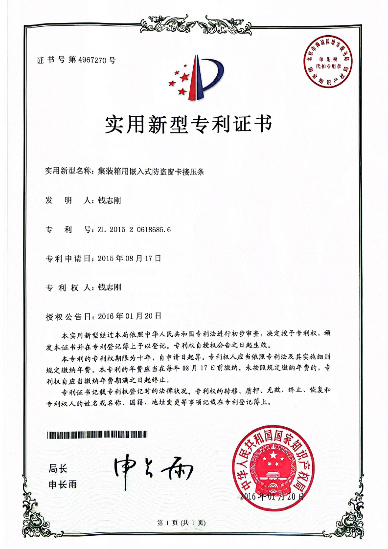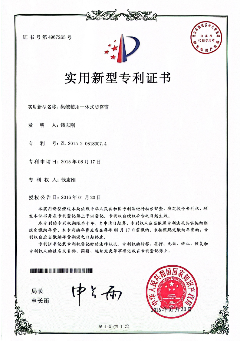 专利证书